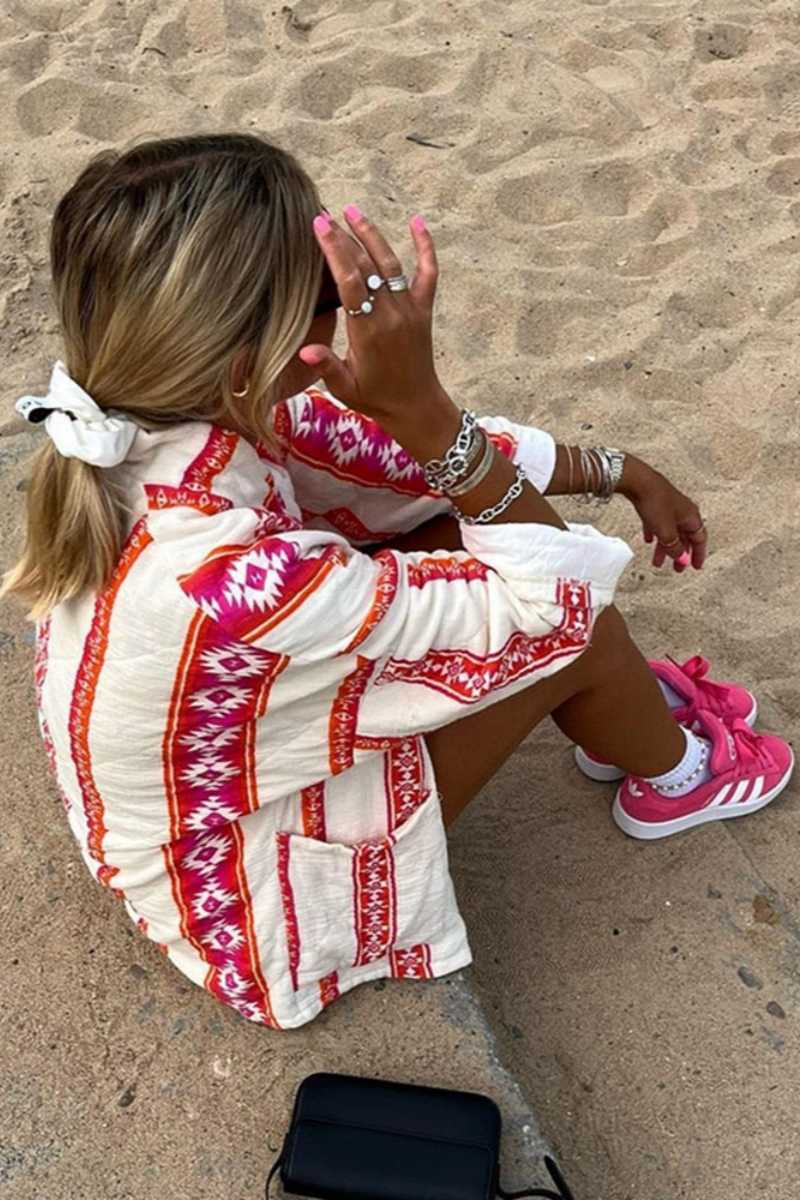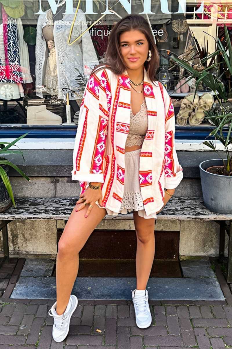 Představujeme naši podzimní/zimní bundu ve stylu kimona s výstřihem do V, navrženou bez knoflíků pro styl bez námahy. Tento lehký kousek s elegantním patchworkovým potiskem a praktickými kapsami z něj dělá všestranný doplněk vašeho šatníku.
