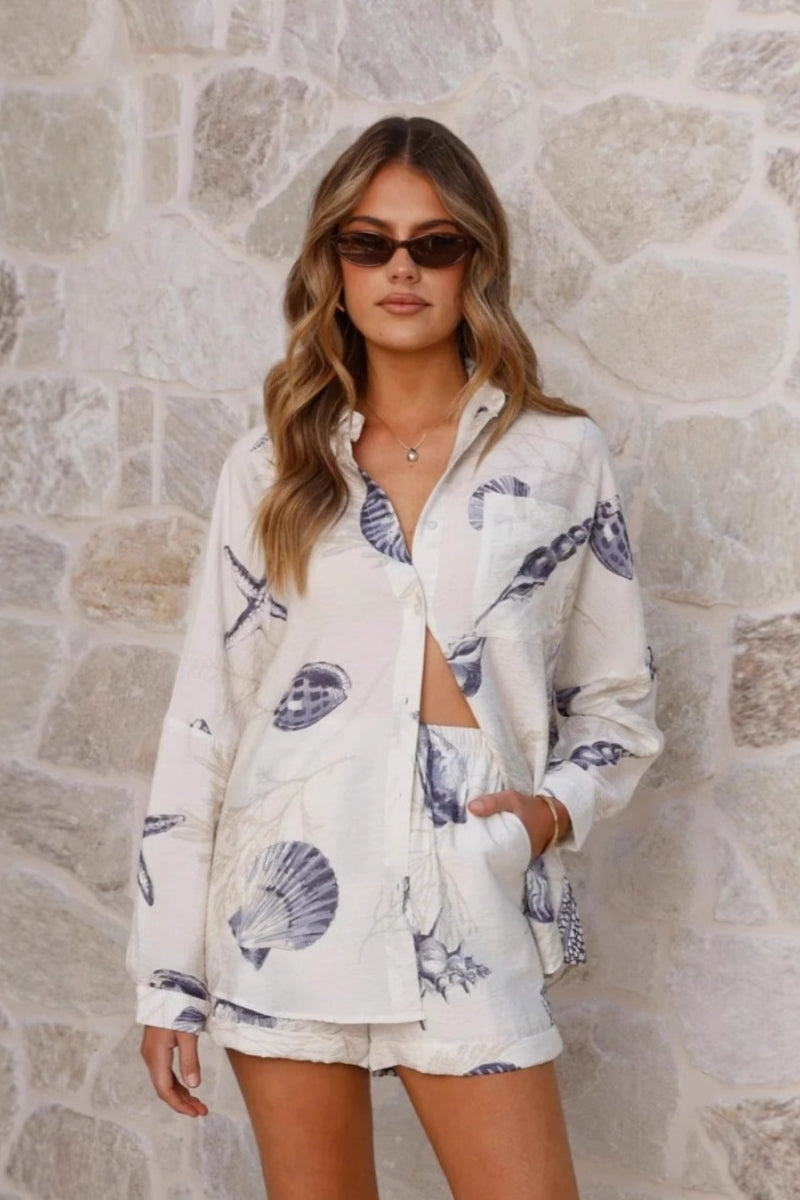 Style: Ocean vacation style, 3D marine prints, with summer freshness