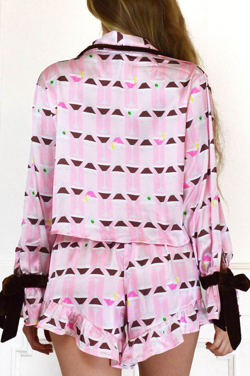 Laget av mykt, behagelig stoff, sørger dette langermet settet for varme og avslapning i kjøligere måneder. Ideell for de som setter pris på en blanding av komfort og søt, sofistikert stil for sitt loungetøy.
