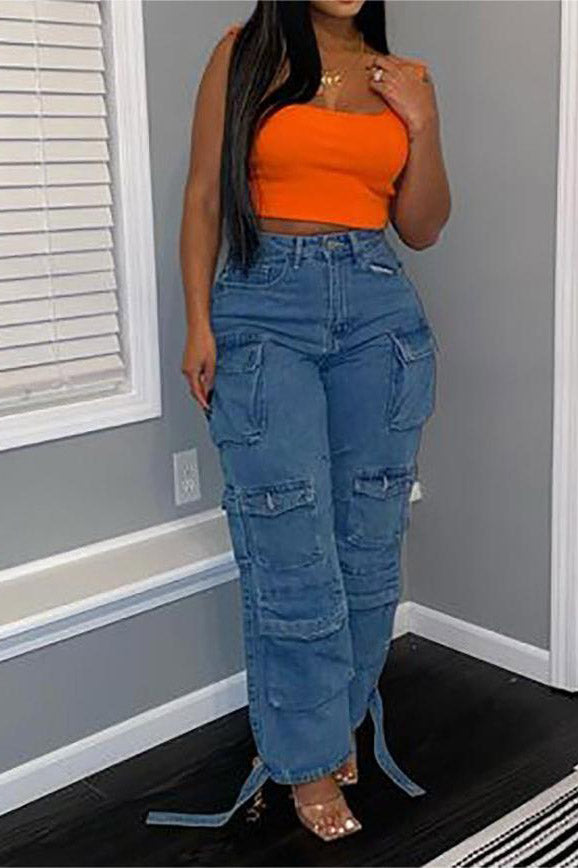 Jeansowe cargo z wysokim stanem
