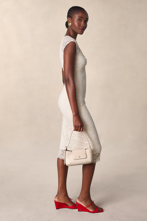 Nora Çiçekli Dantel Fiyonk Midi Elbise